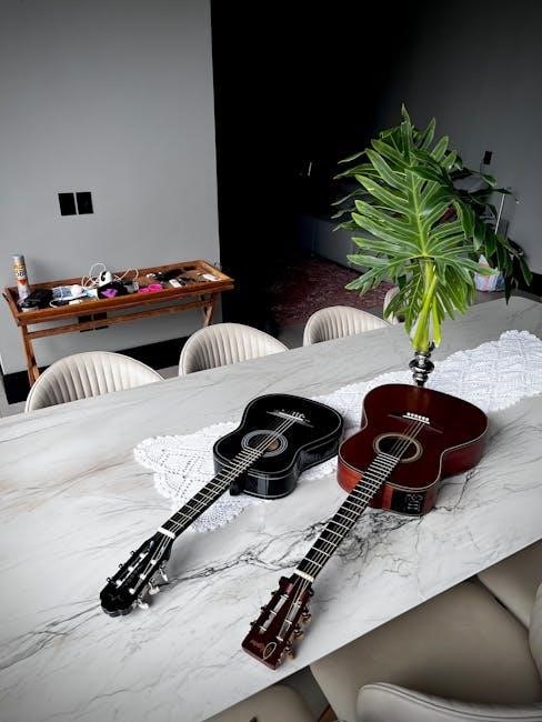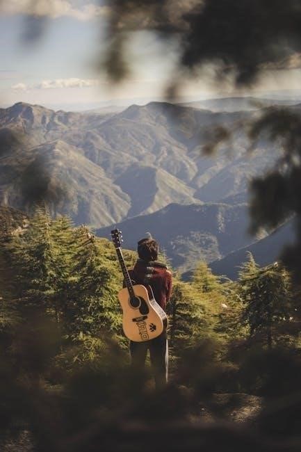 Root voicings and inverted voicings are fundamental concepts in playing guitar triads. A root voicing places the root note as the lowest pitch, providing a clear harmonic foundation. In contrast, inverted voicings position the third or fifth as the lowest note, offering a different tonal color and texture. The guitar triads PDF provides detailed diagrams and explanations to help guitarists understand and master these voicings. By practicing both root and inverted triads, players can expand their harmonic possibilities and add depth to their playing. These voicings are essential for creating melodic solos and complex chord progressions, making them a vital part of any guitarist’s toolkit.